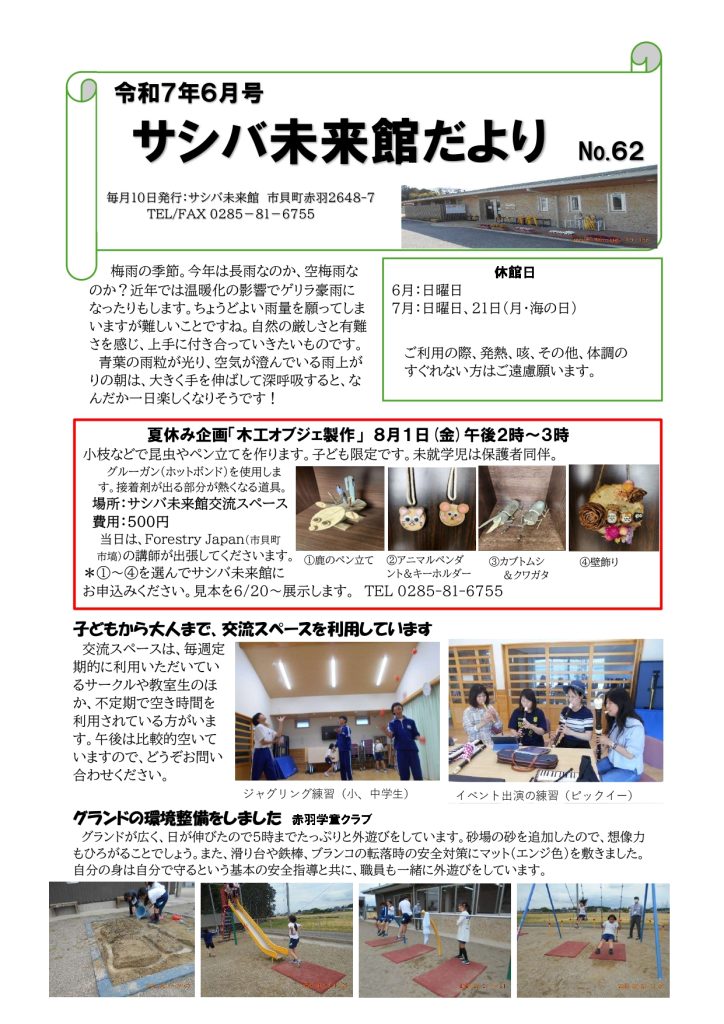 サシバ未来館便り6月号です。ご覧ください。