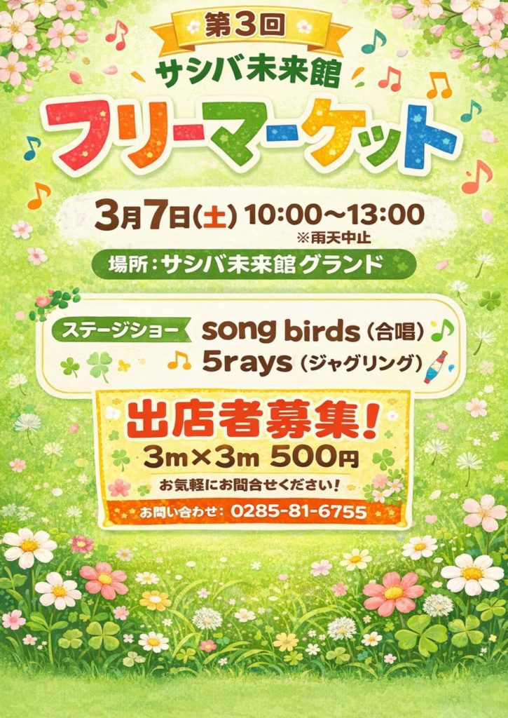 出店者を募集しますので、ご希望の方はサシバ未来館まで